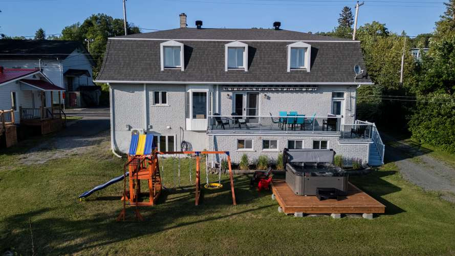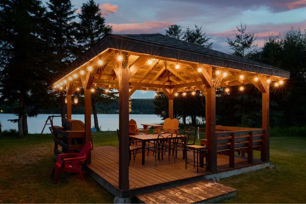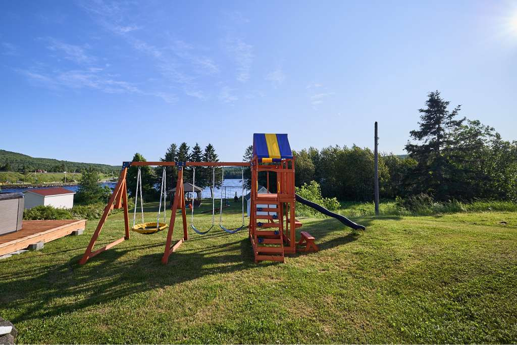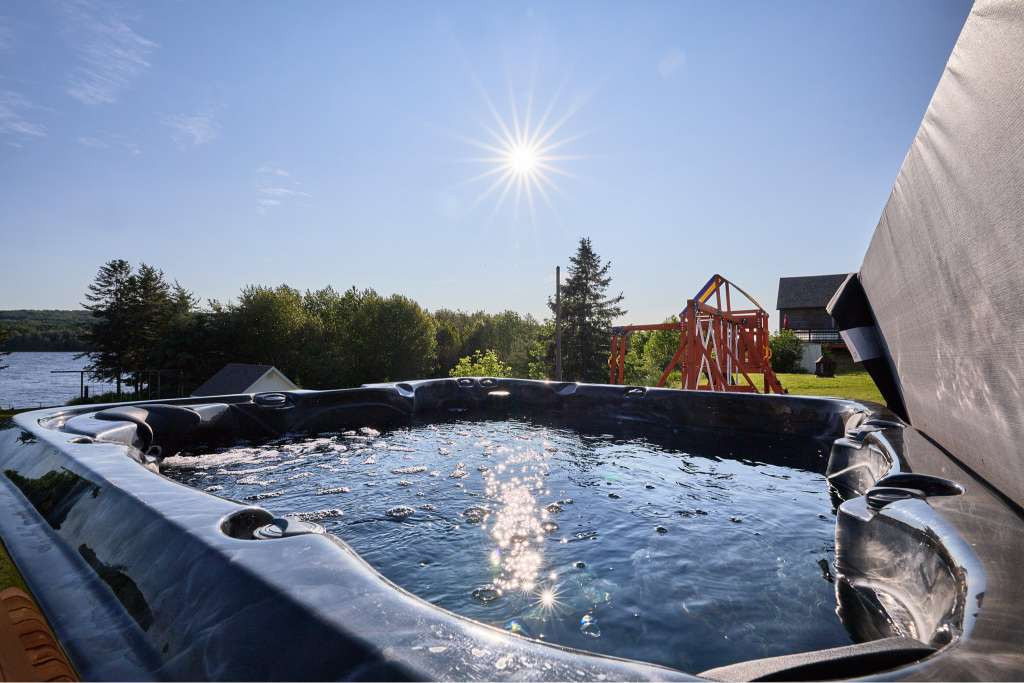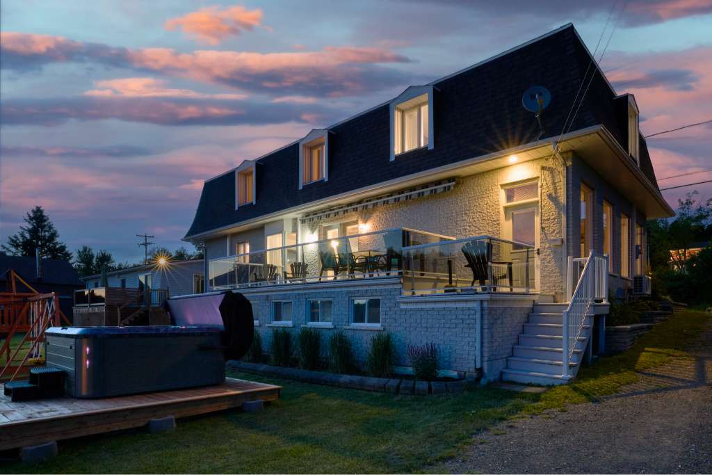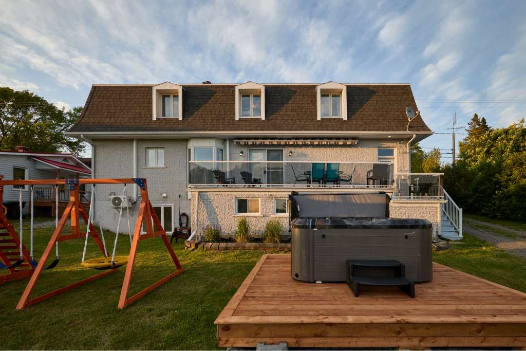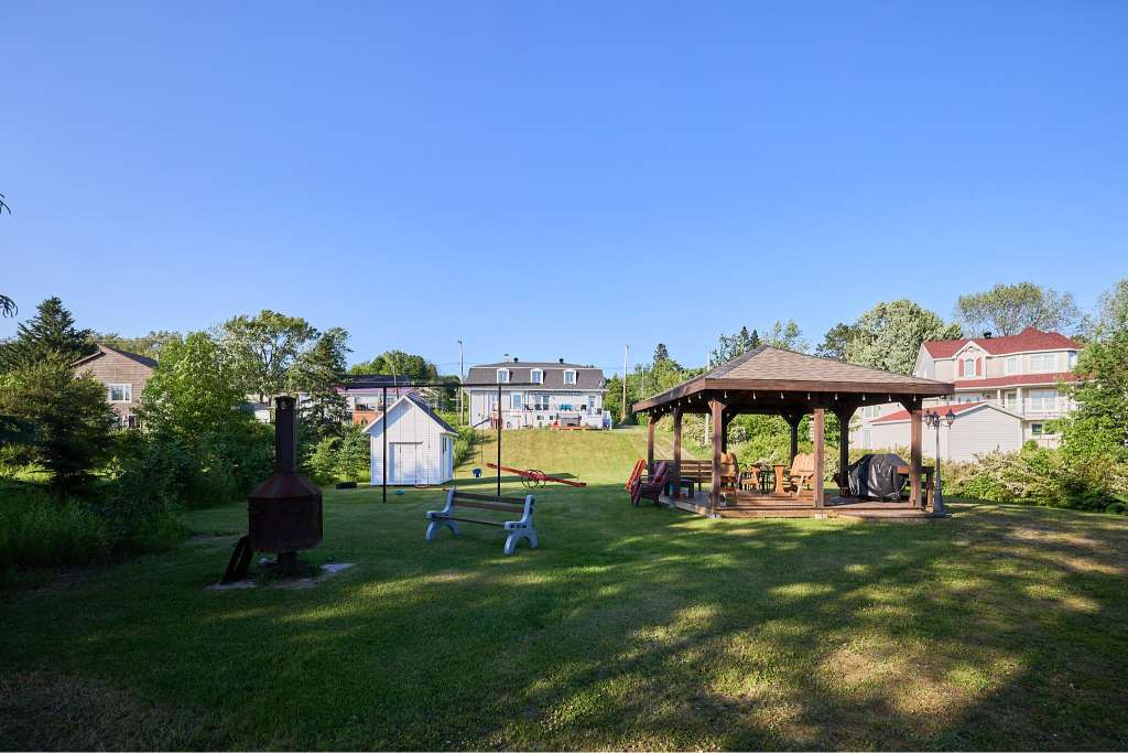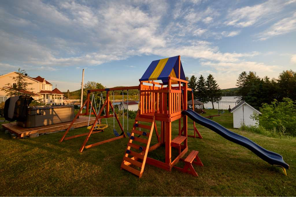 À l’extérieur : foyer extérieur (bois inclus), BBQ (disponible de mai à octobre), terrasse avec auvent, gazebo, chaises longues, balançoires, etc.