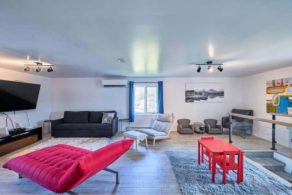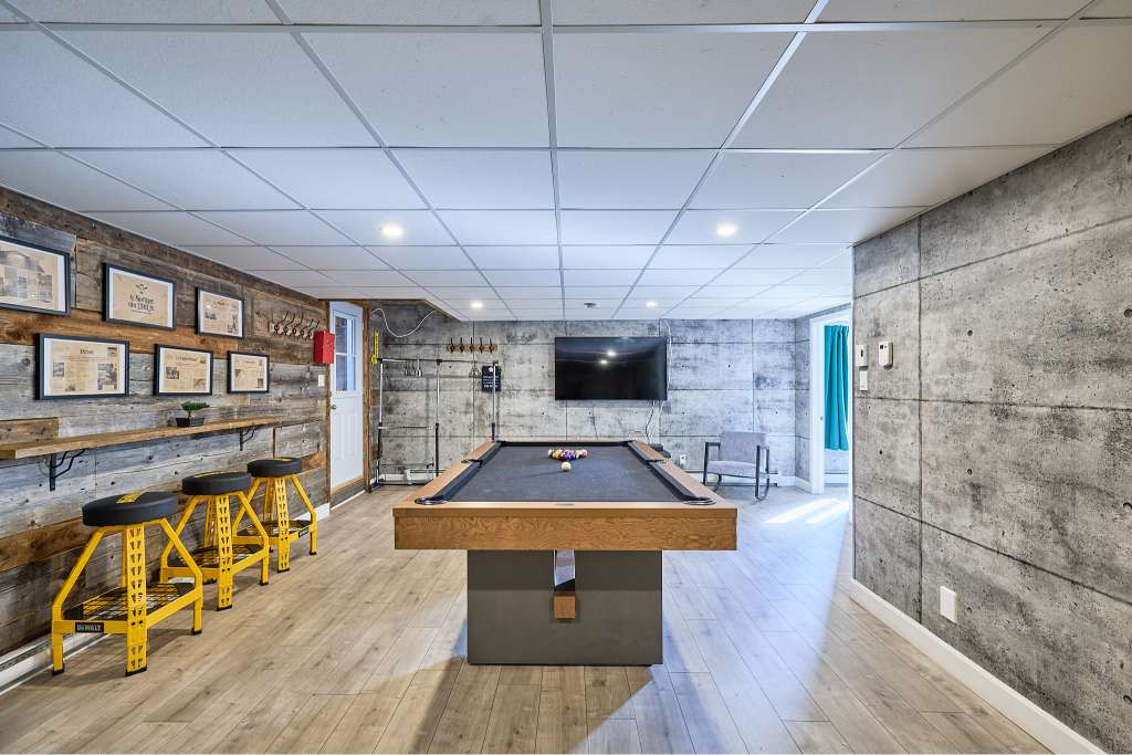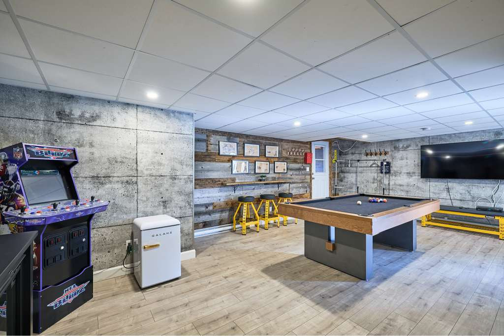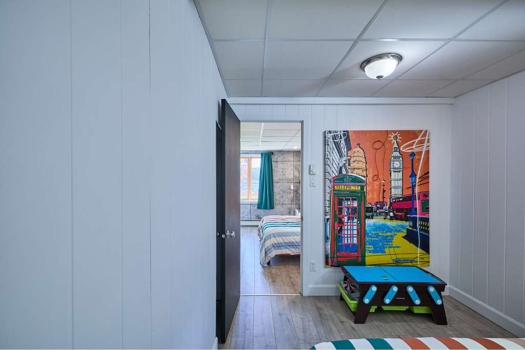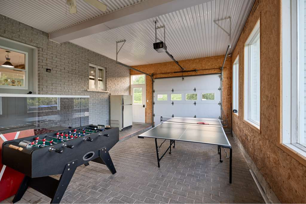 Divertissements intérieurs, beau temps, mauvais temps : table de billard, téléviseur, jeux de poche, arcade Pac-Man, arcade de soccer, console Wii avec 4 manettes et 42 jeux. De quoi plaire à tous, petits et grands!