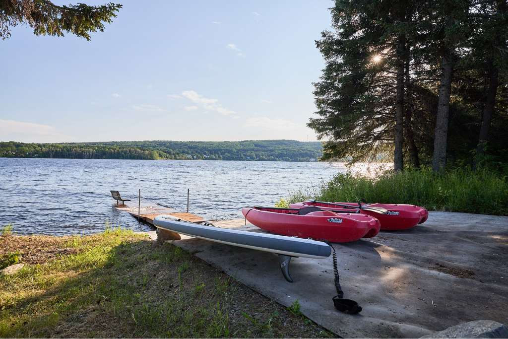 Profitez d’un accès à une plage privée, ainsi que d’un quai de 24 pieds. Pour les amateurs d’activités nautiques : 2 kayaks, 2 canots et 1 planche à pagaie sont mis à votre disposition, selon les conditions météo (de mai à octobre).