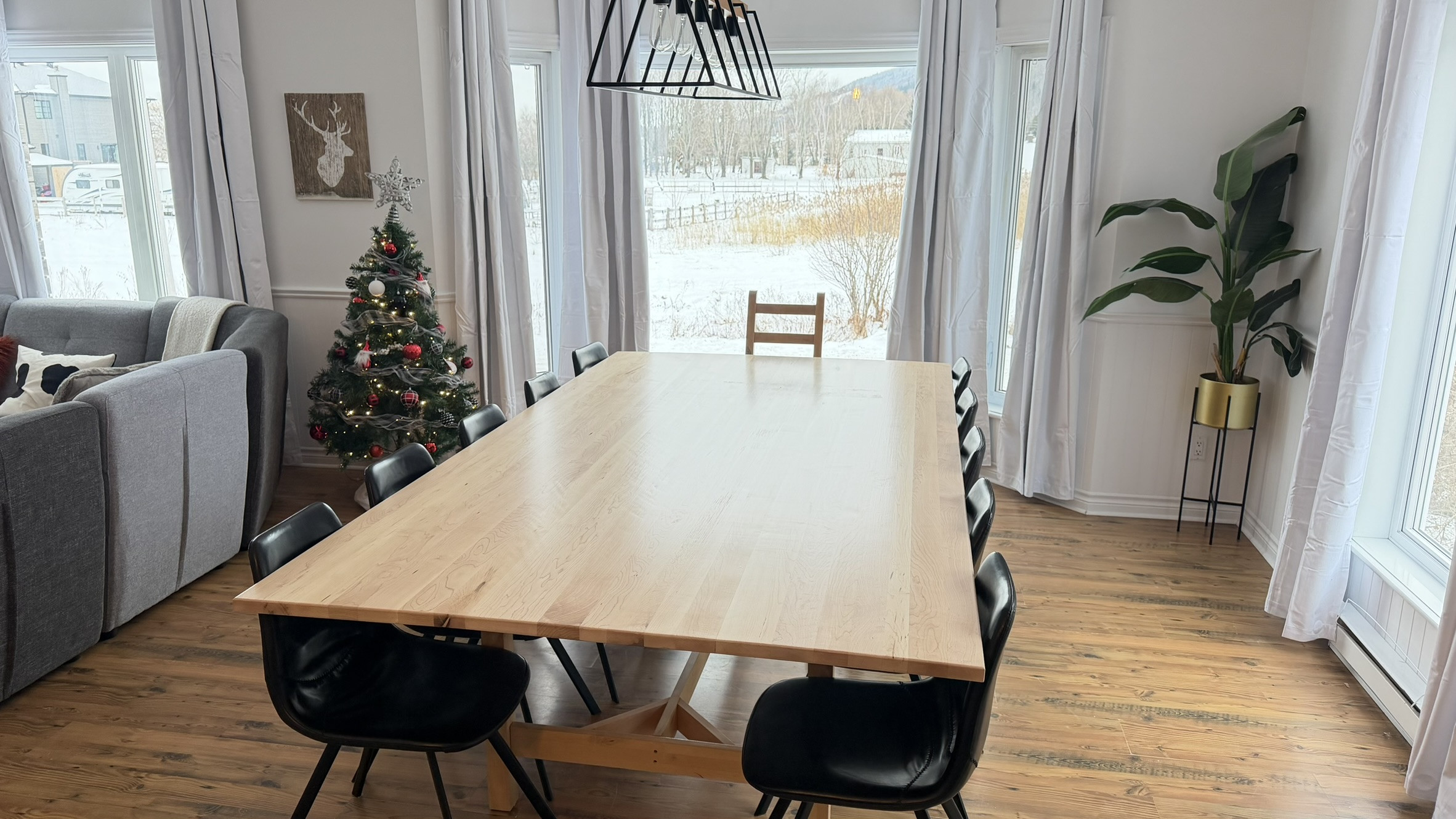 Le chalet est aménagé pour offrir des espaces de vie fonctionnels, une belle luminosité et une vue partielle sur le fleuve Saint-Laurent.