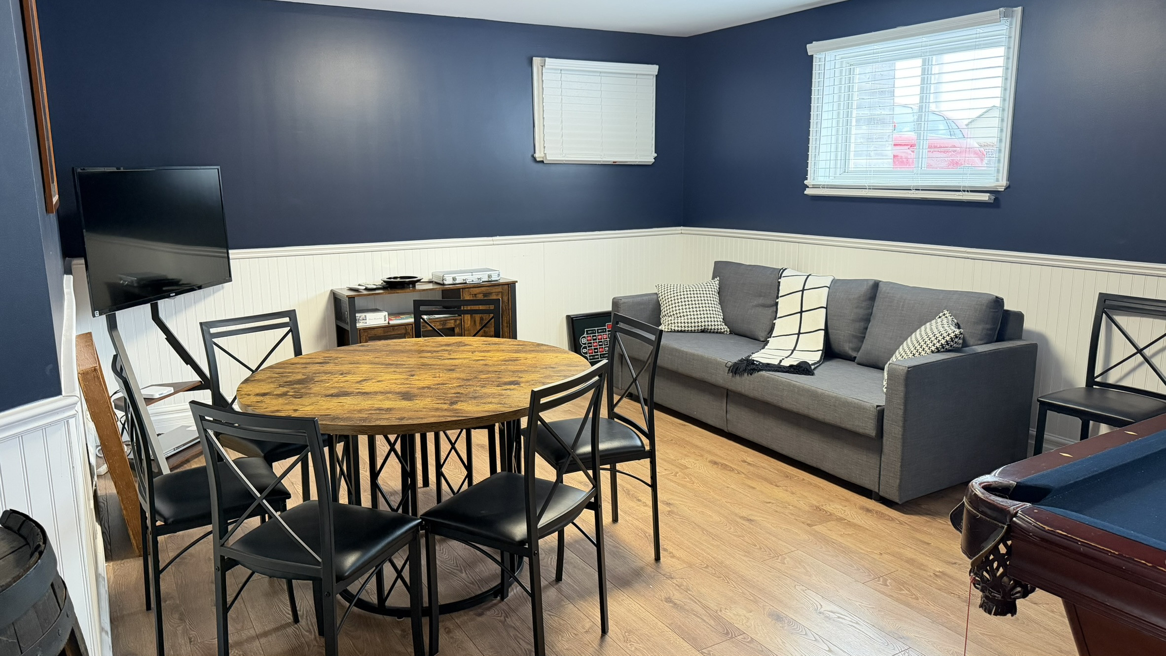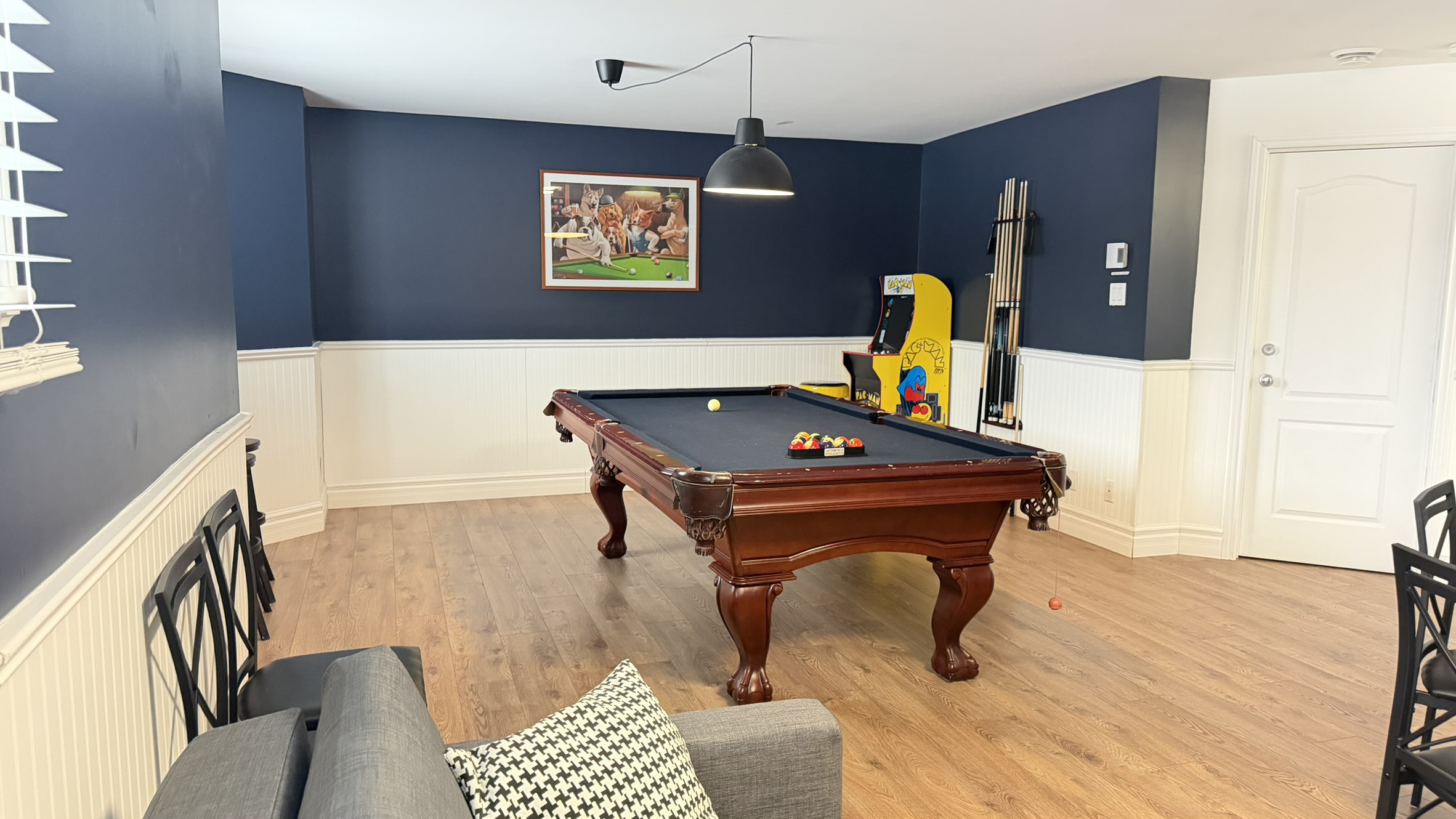 * Salle de jeux avec bornes d’arcade, console Nintendo Switch et jeux de société