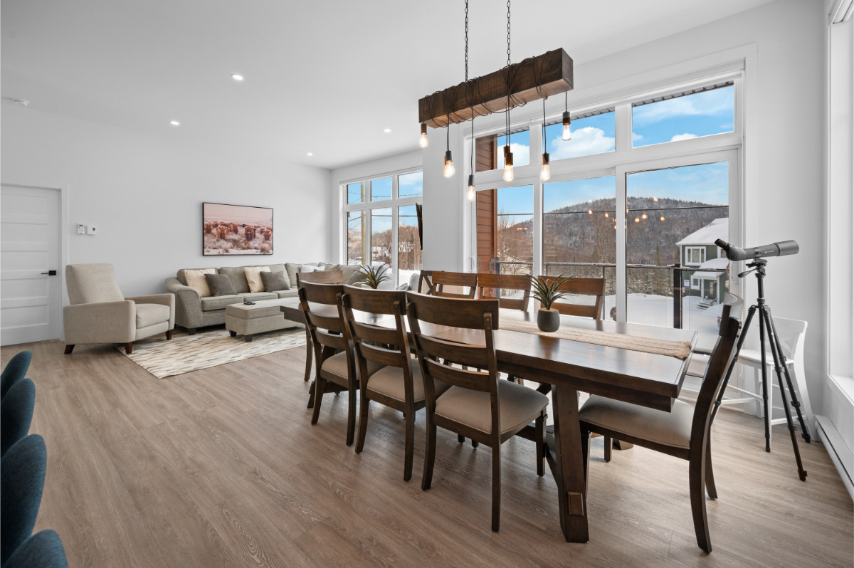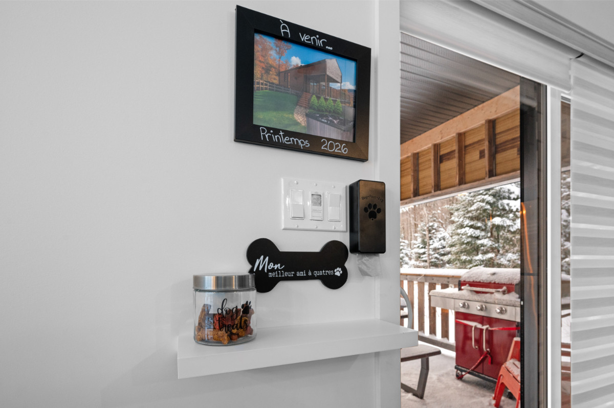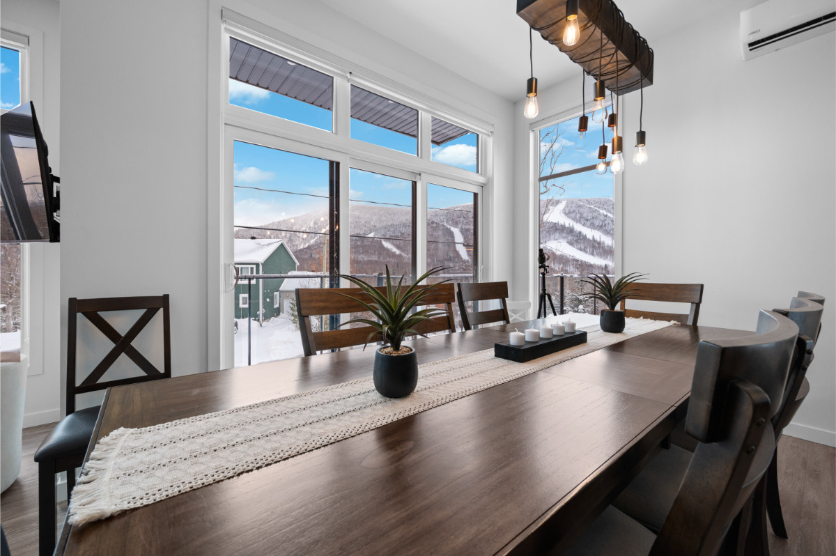 Un BBQ et un foyer extérieur au propane sont disponibles de mai à octobre pour profiter pleinement de l’extérieur. Le chalet dispose d’une connexion Wi-Fi, de téléviseurs intelligents, de la climatisation ainsi que d’une borne de recharge pour véhicule électrique.