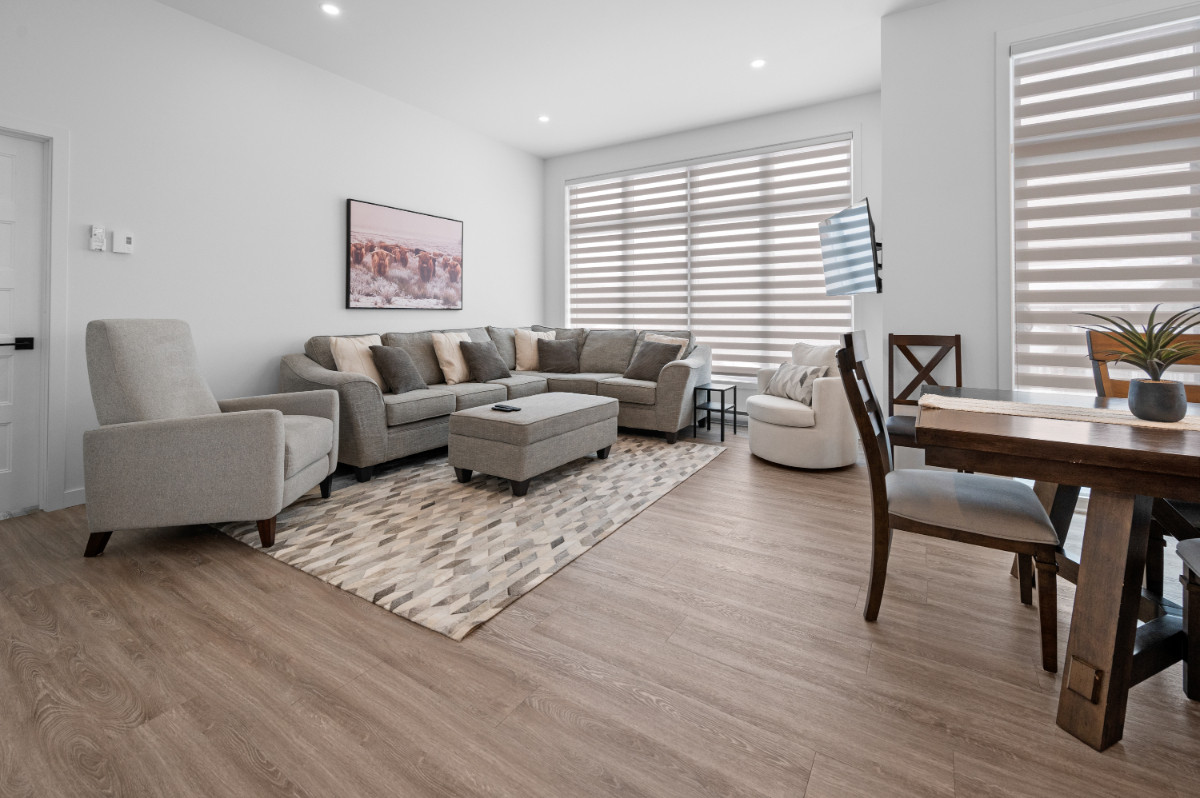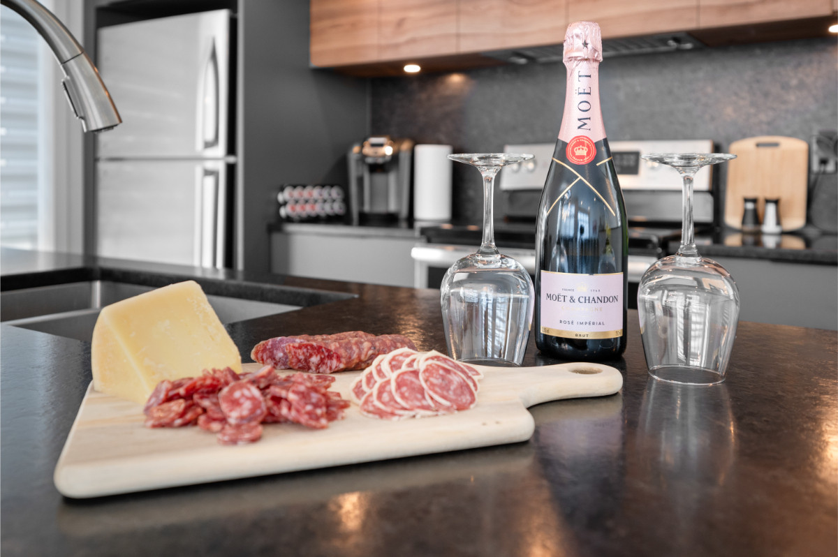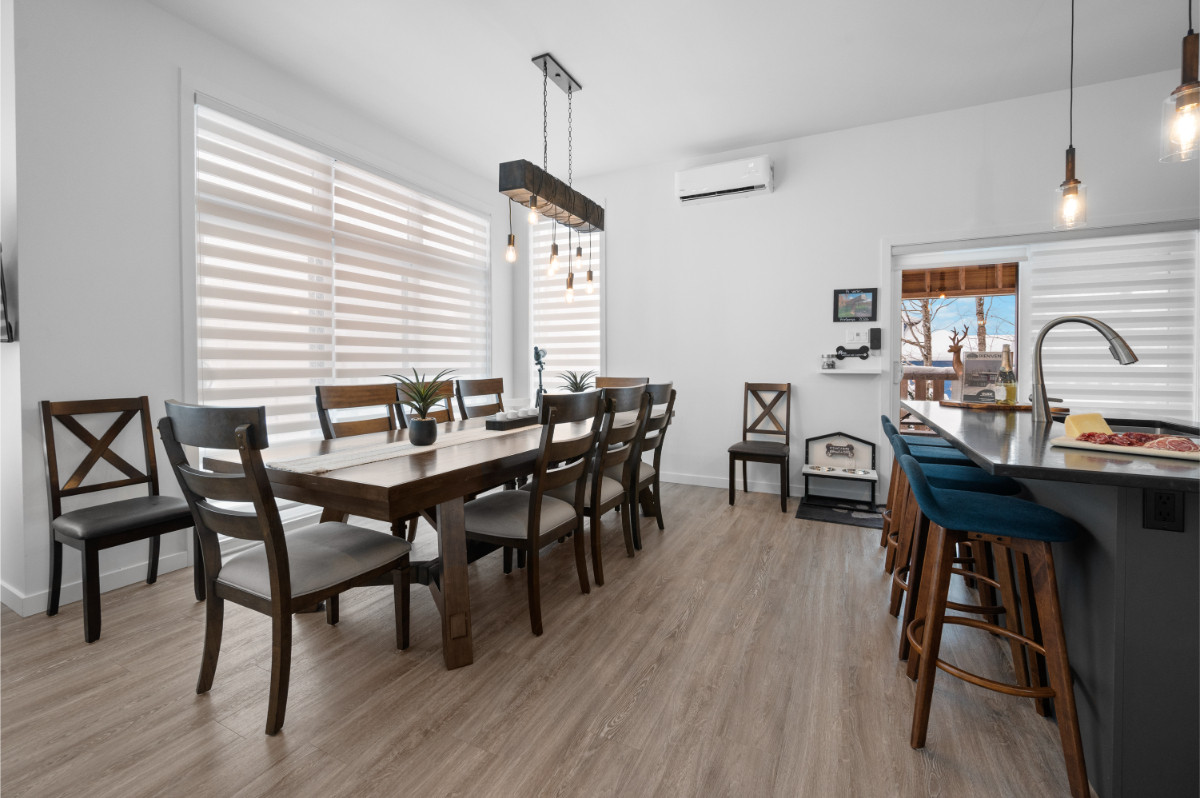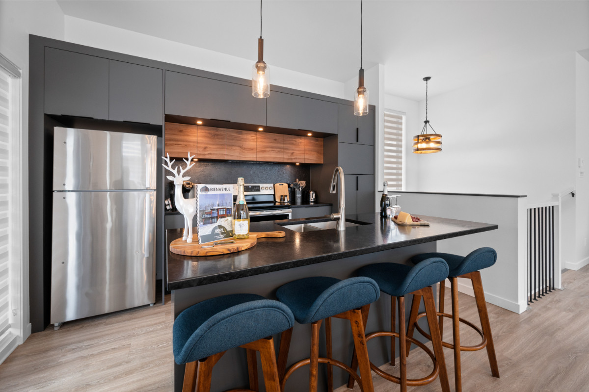 Un BBQ et un foyer extérieur au propane sont disponibles de mai à octobre pour profiter pleinement de l’extérieur. Le chalet dispose d’une connexion Wi-Fi, de téléviseurs intelligents, de la climatisation ainsi que d’une borne de recharge pour véhicule électrique.