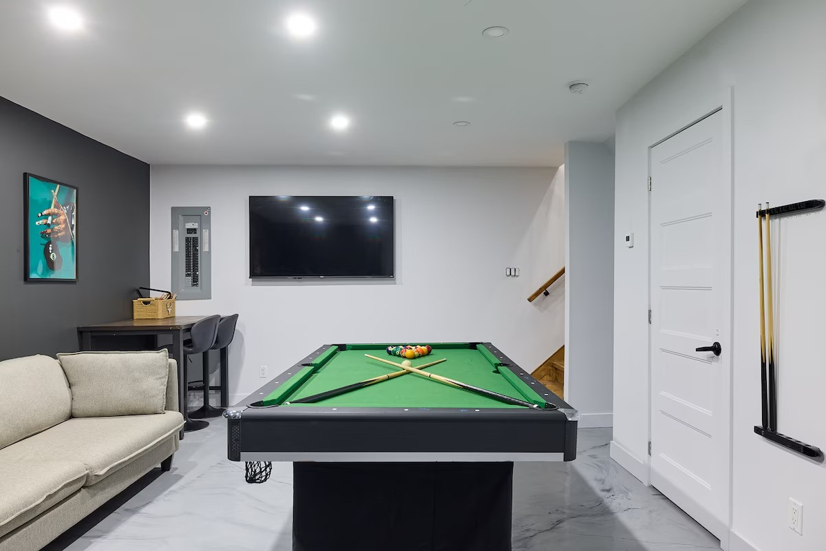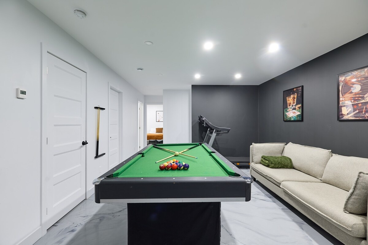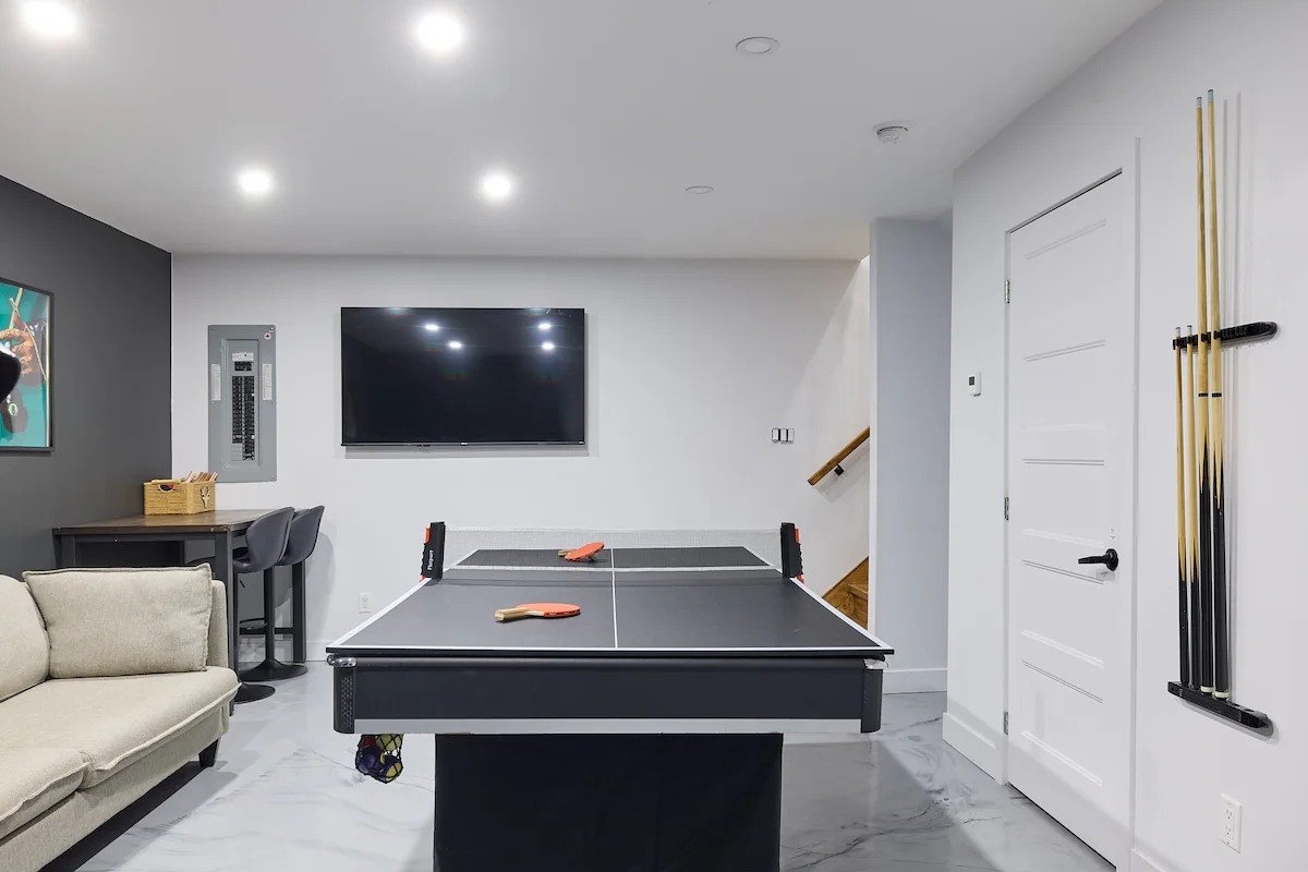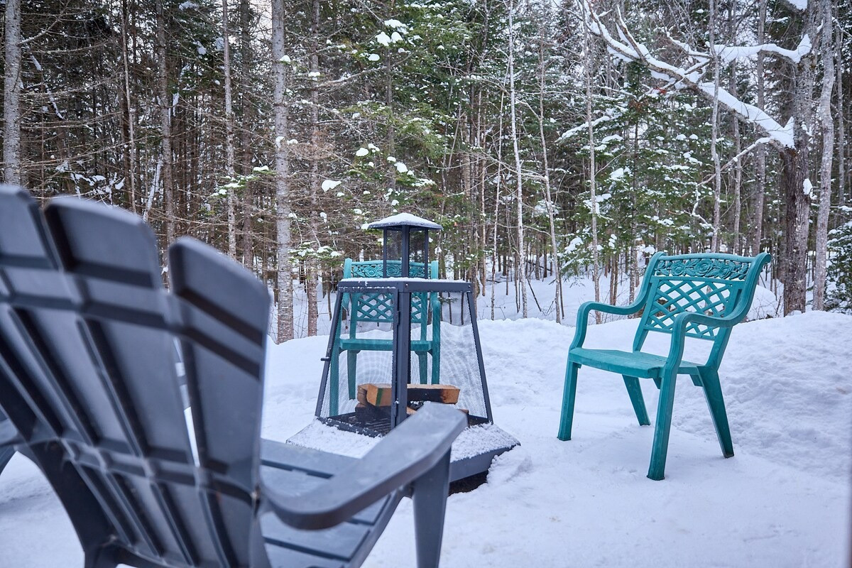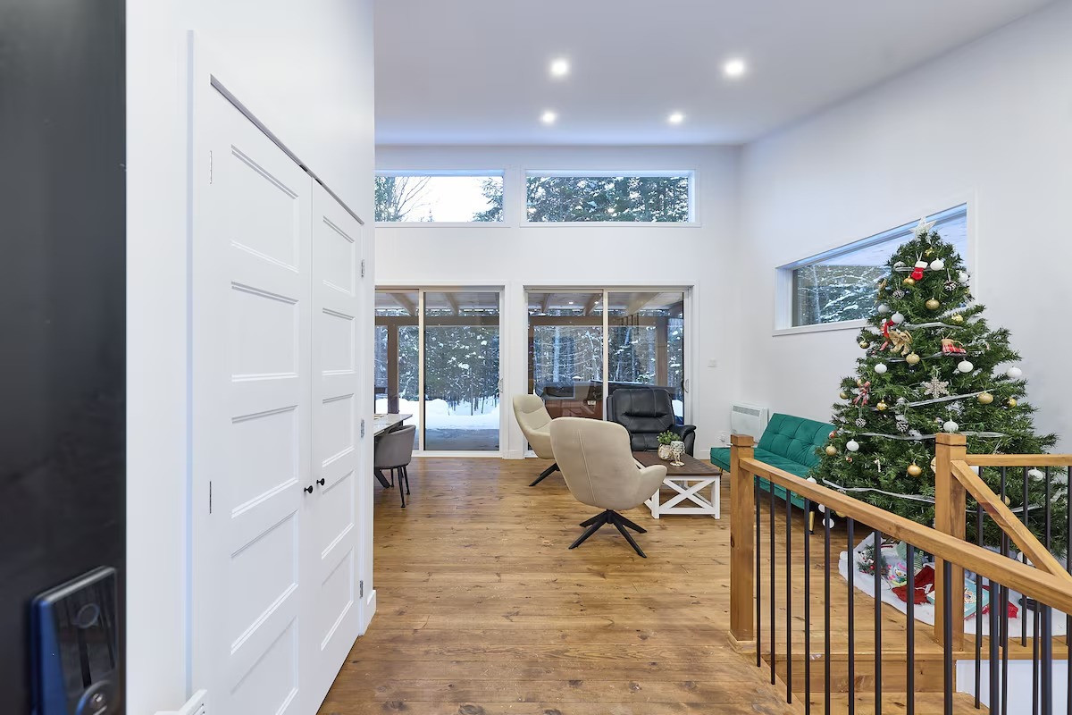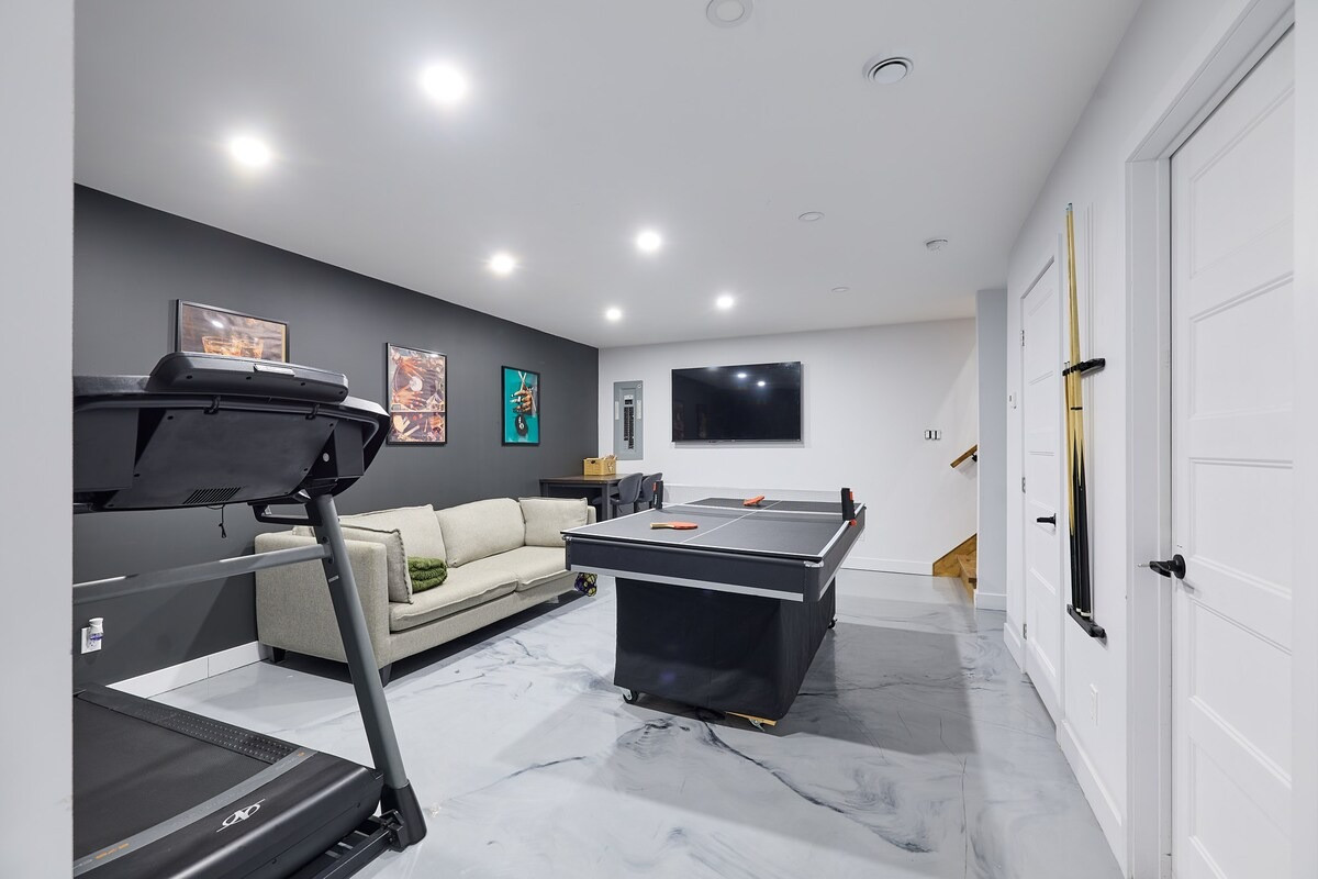 Pensé pour accueillir jusqu’à 10 personnes, le chalet propose des espaces chaleureux et lumineux grâce à une grande fenestration offrant une vue directe sur la nature. Vous y trouverez 3 chambres confortables (2 lits queen, 2 lits doubles) ainsi que plusieurs options de couchage supplémentaires, idéales pour les groupes et les familles. La cuisine entièrement équipée vous permet de cuisiner comme à la maison, tandis que le salon devient l’endroit parfait pour relaxer après une journée bien remplie. En plus des incontournables comme le Wi-Fi et une télé intelligente, vous aurez accès à des jeux de société, une table de billard et une table de ping-pong. Un tapis roulant est également à votre disposition pour rester actif durant votre séjour.