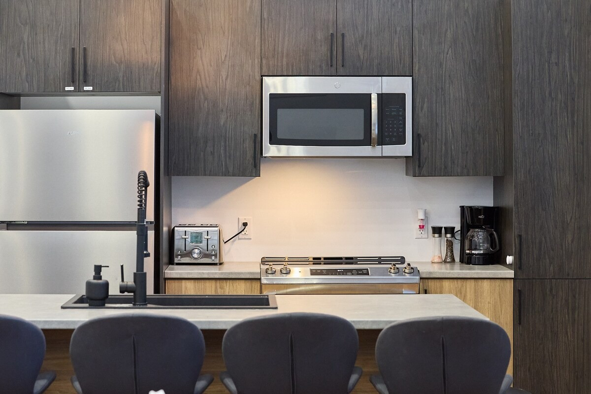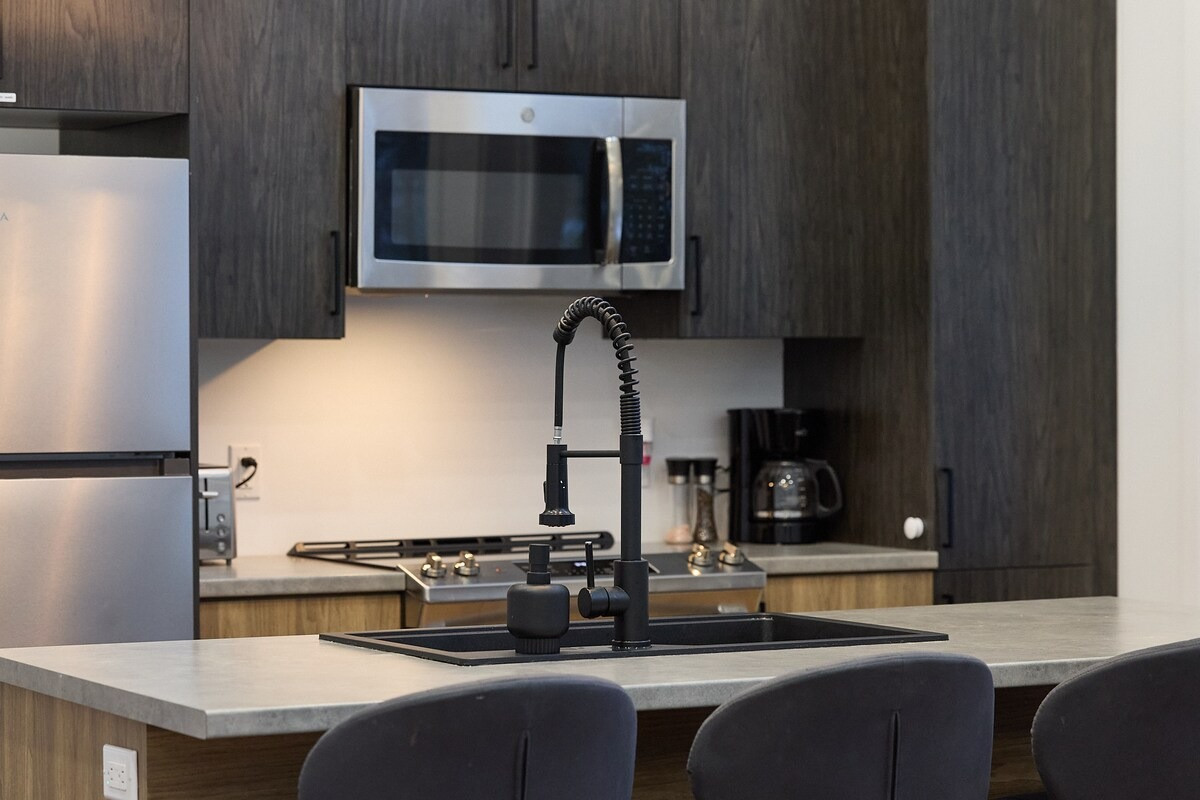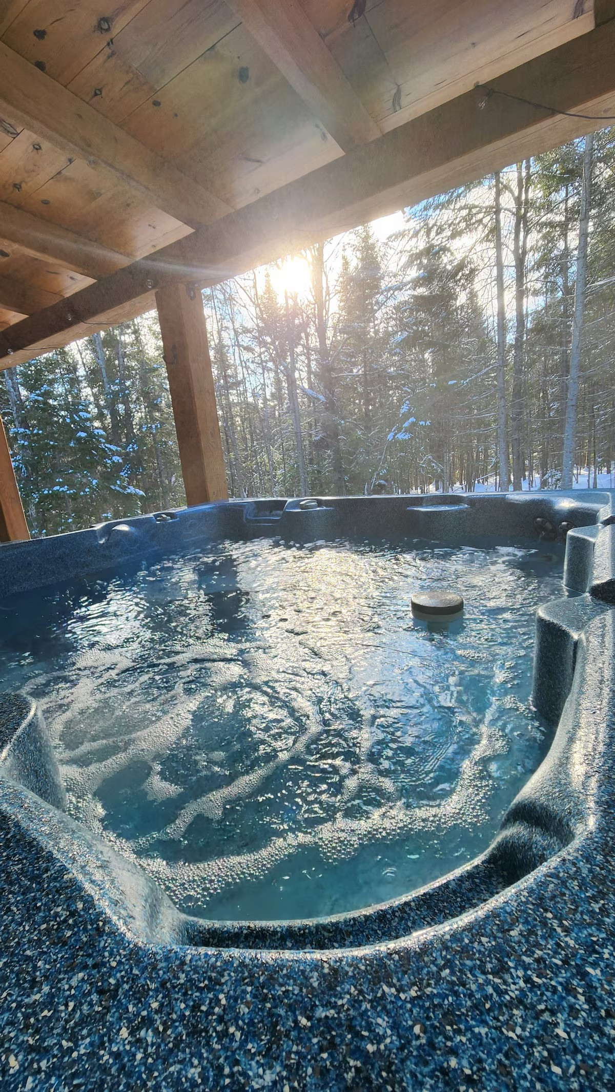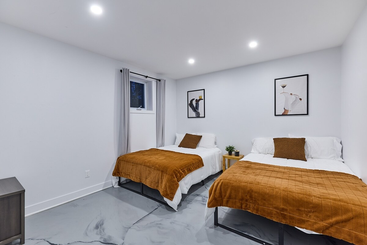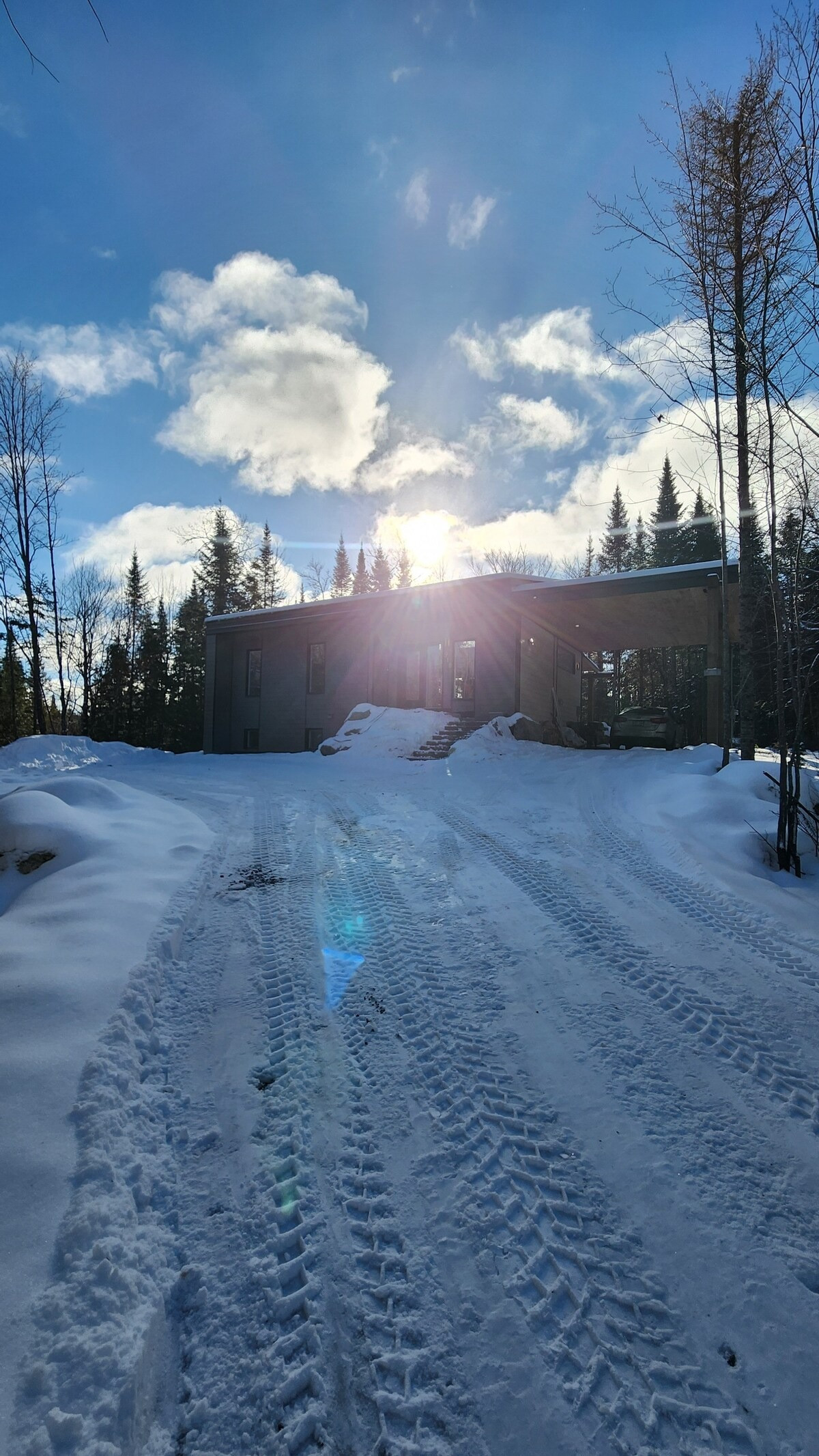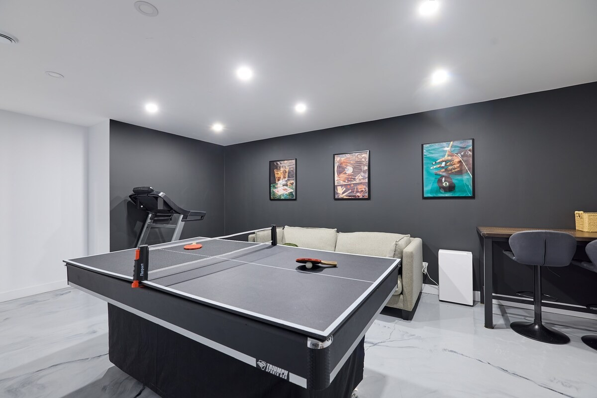 Pensé pour accueillir jusqu’à 10 personnes, le chalet propose des espaces chaleureux et lumineux grâce à une grande fenestration offrant une vue directe sur la nature. Vous y trouverez 3 chambres confortables (2 lits queen, 2 lits doubles) ainsi que plusieurs options de couchage supplémentaires, idéales pour les groupes et les familles. La cuisine entièrement équipée vous permet de cuisiner comme à la maison, tandis que le salon devient l’endroit parfait pour relaxer après une journée bien remplie. En plus des incontournables comme le Wi-Fi et une télé intelligente, vous aurez accès à des jeux de société, une table de billard et une table de ping-pong. Un tapis roulant est également à votre disposition pour rester actif durant votre séjour.