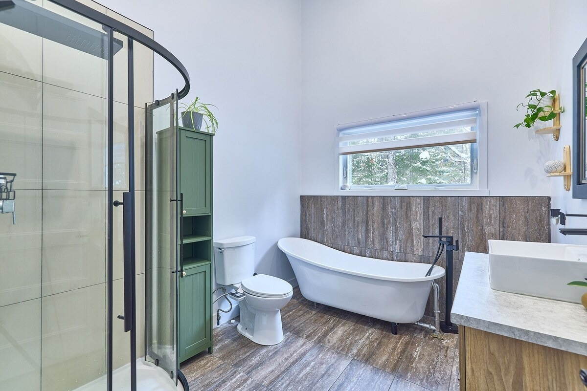 Accès à des lacs et à la rivière à proximité, parfait pour la baignade, le kayak, le paddle et les activités nautiques. Le Lac Ouareau, très prisé dans la région, se trouve à quelques minutes seulement. La région offre également une multitude d’activités toute l’année : randonnée, vélo de montagne, VTT, ski, raquette et motoneige. Un arrêt au Parc régional de la Forêt Ouareau est un incontournable.