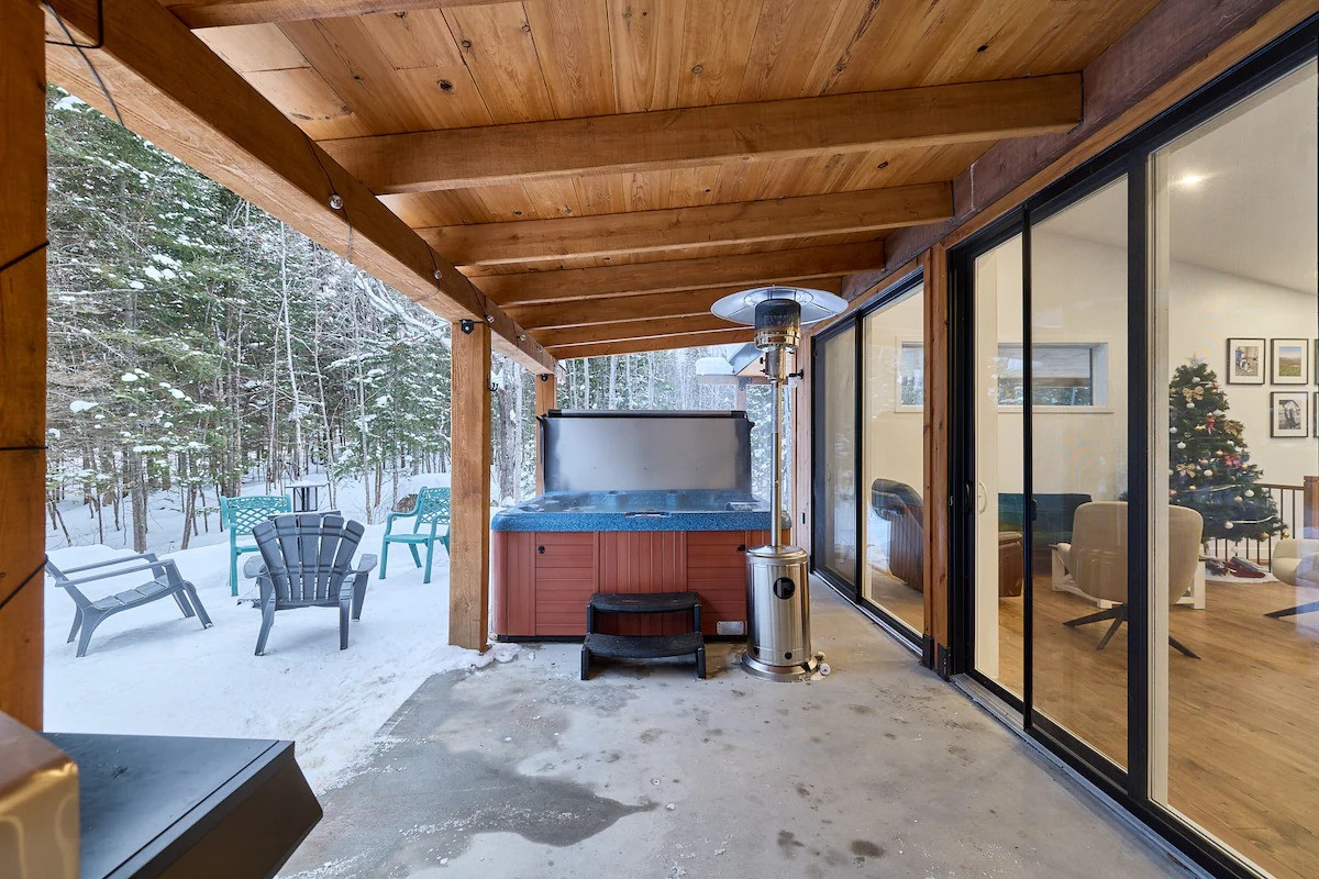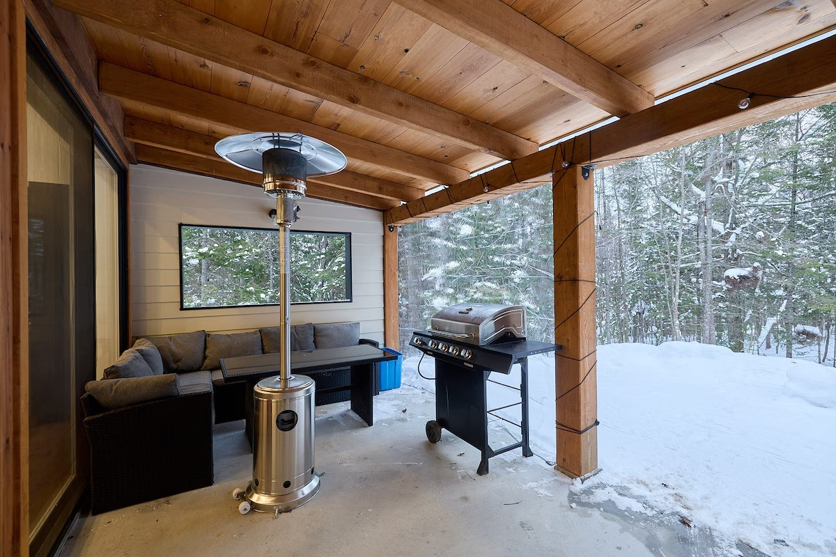 Profitez du grand air avec un espace détente comprenant des chauffe-terrasses, un BBQ 4 saisons, un foyer extérieur au bois ainsi qu’un spa privé accessible à l’année pour des moments de relaxation incomparables.