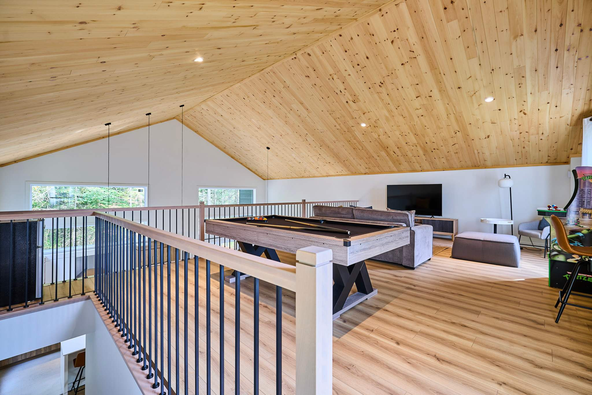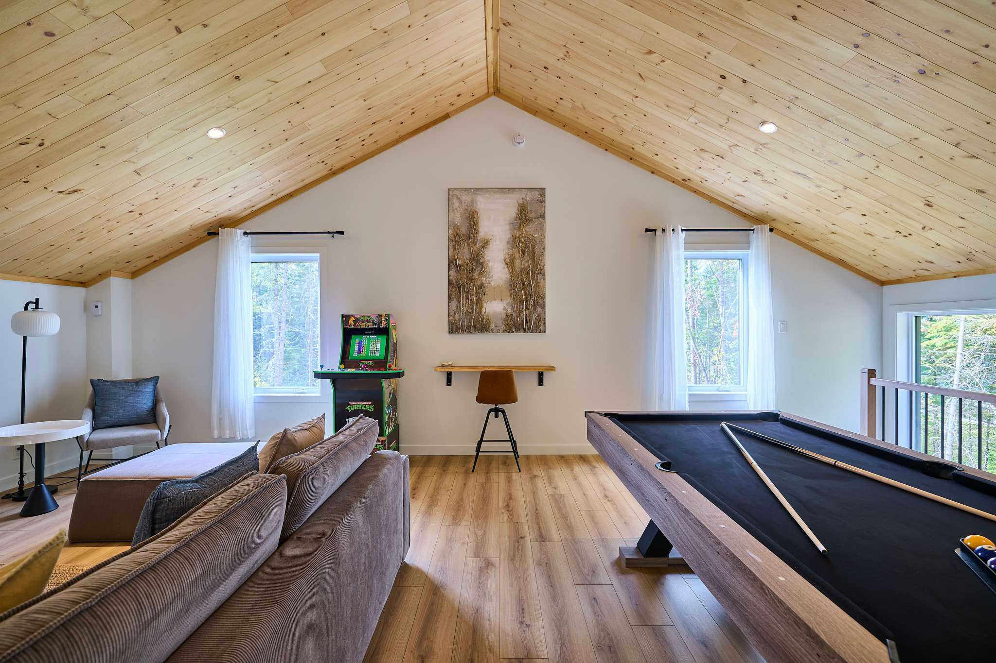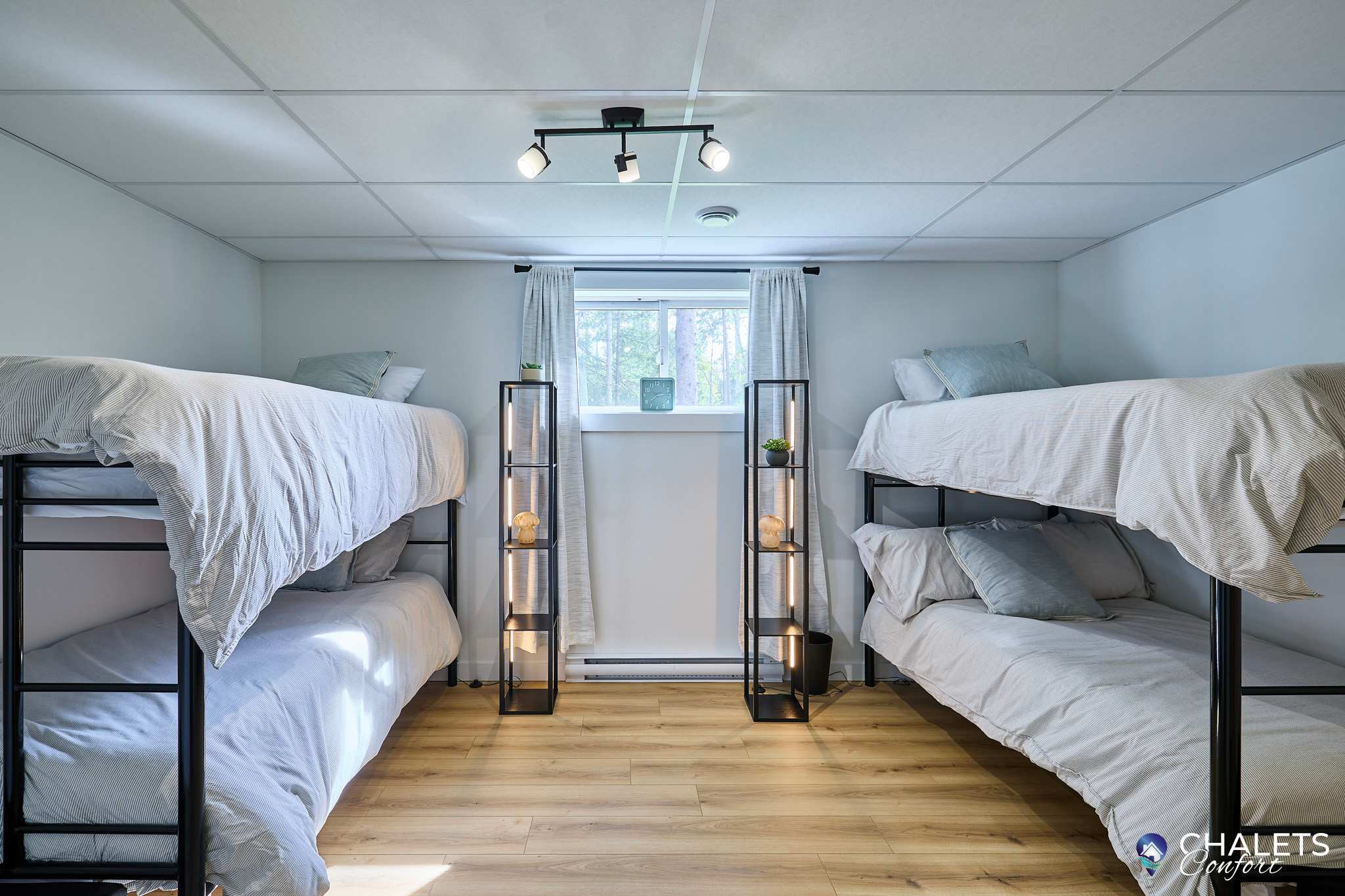 La Villa Boréale, conçue pour accueillir jusqu’à 12 personnes, est idéale pour un séjour entre amis ou en famille. Ce chalet comprend 4 chambres offrant 1 lit king, 2 lits queen, 2 lits superposés doubles et 1 divan-lit à la mezzanine, ainsi que 2 salles de bain complètes.