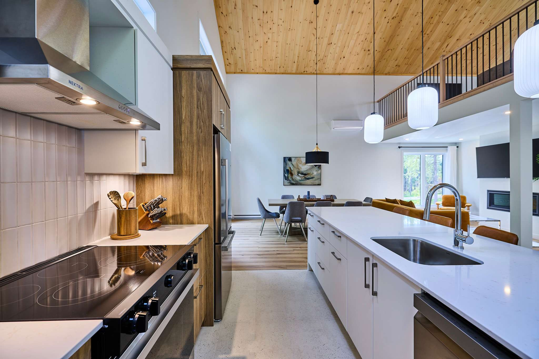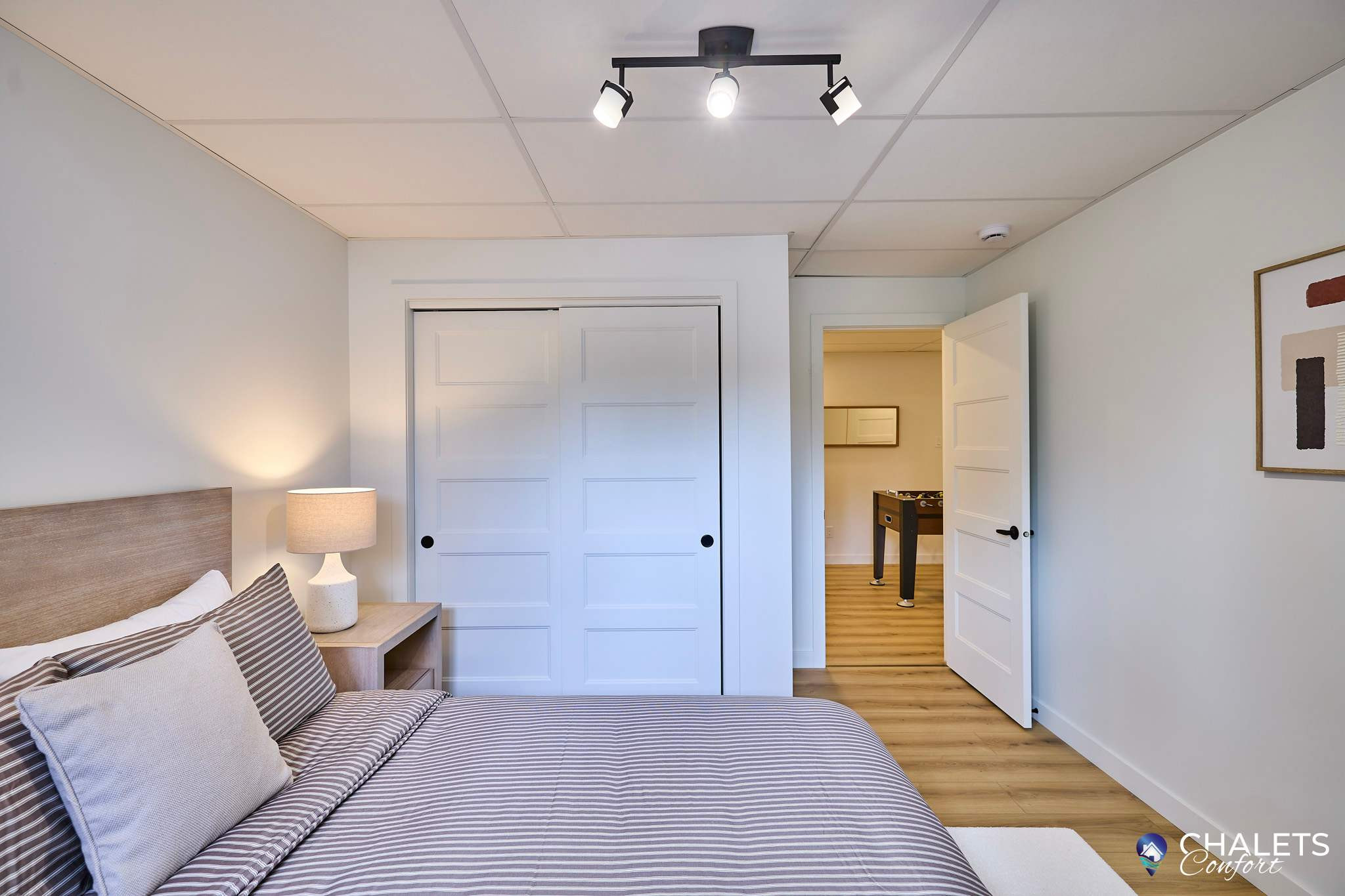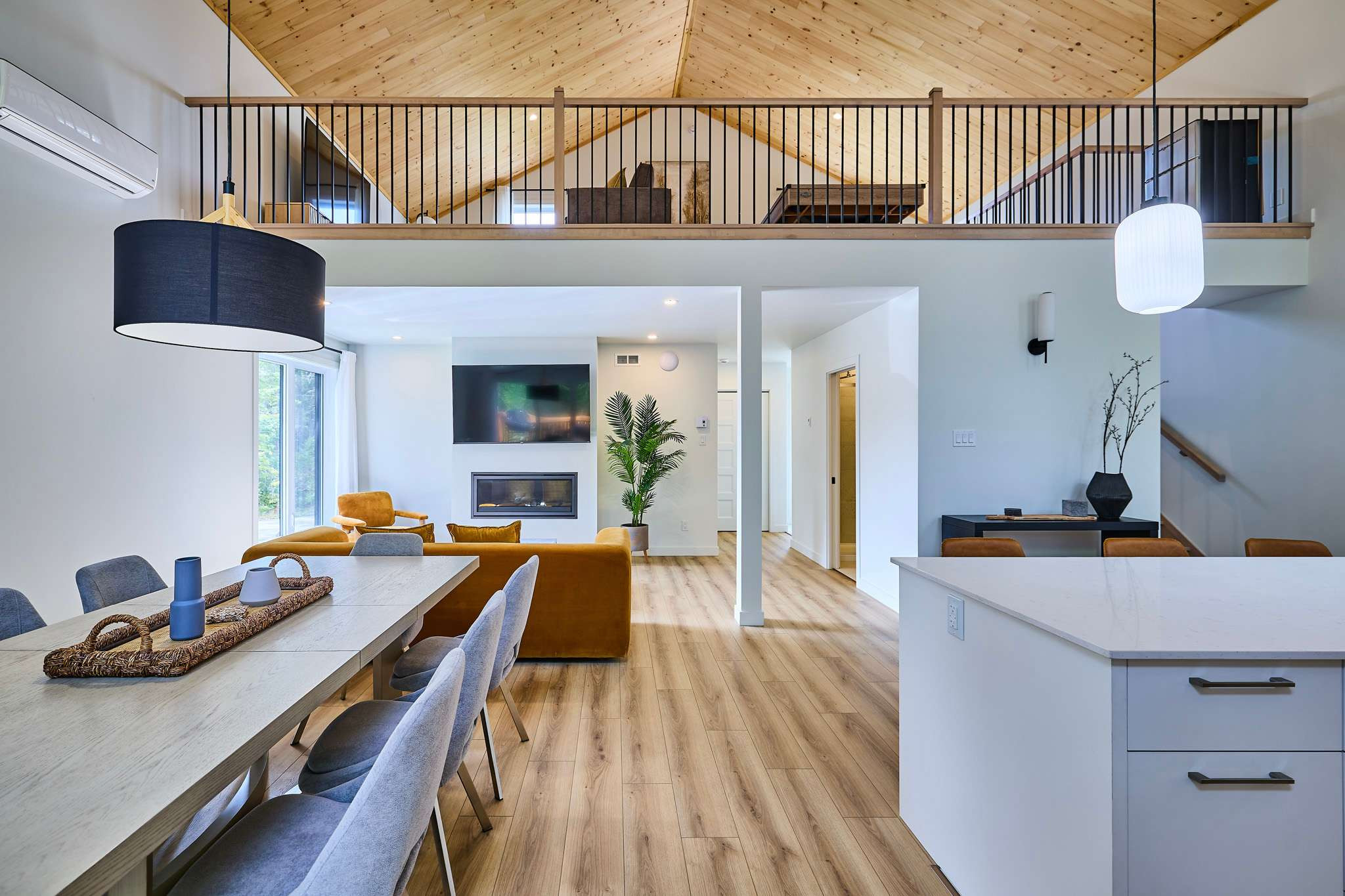 La Villa Boréale, conçue pour accueillir jusqu’à 12 personnes, est idéale pour un séjour entre amis ou en famille. Ce chalet comprend 4 chambres offrant 1 lit king, 2 lits queen, 2 lits superposés doubles et 1 divan-lit à la mezzanine, ainsi que 2 salles de bain complètes.