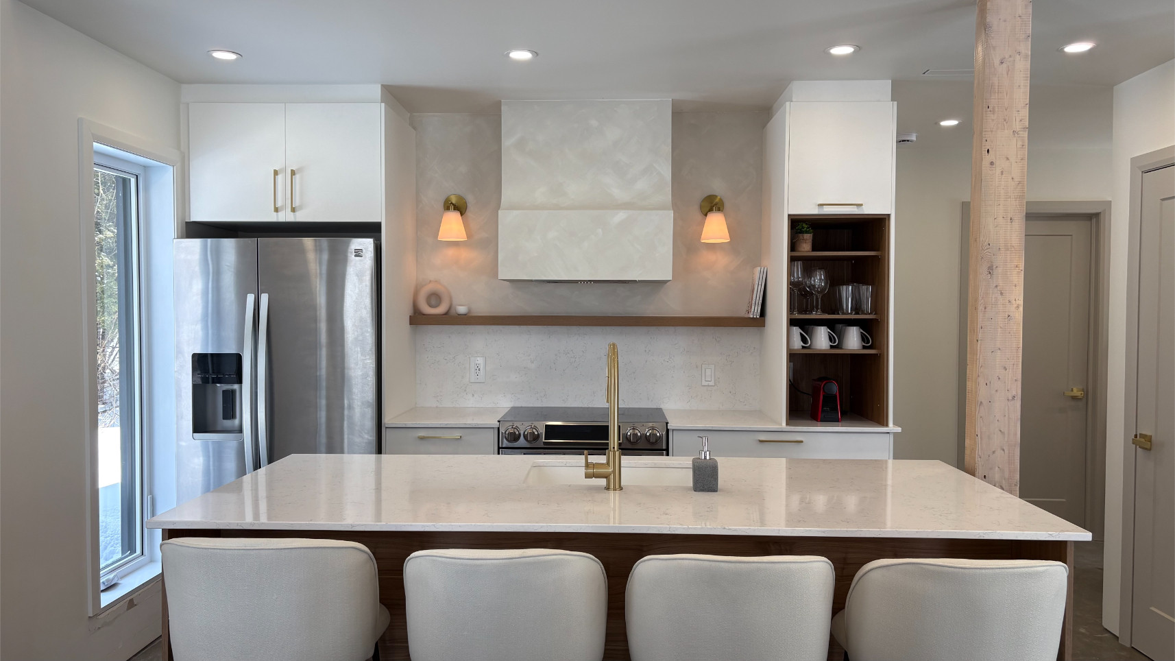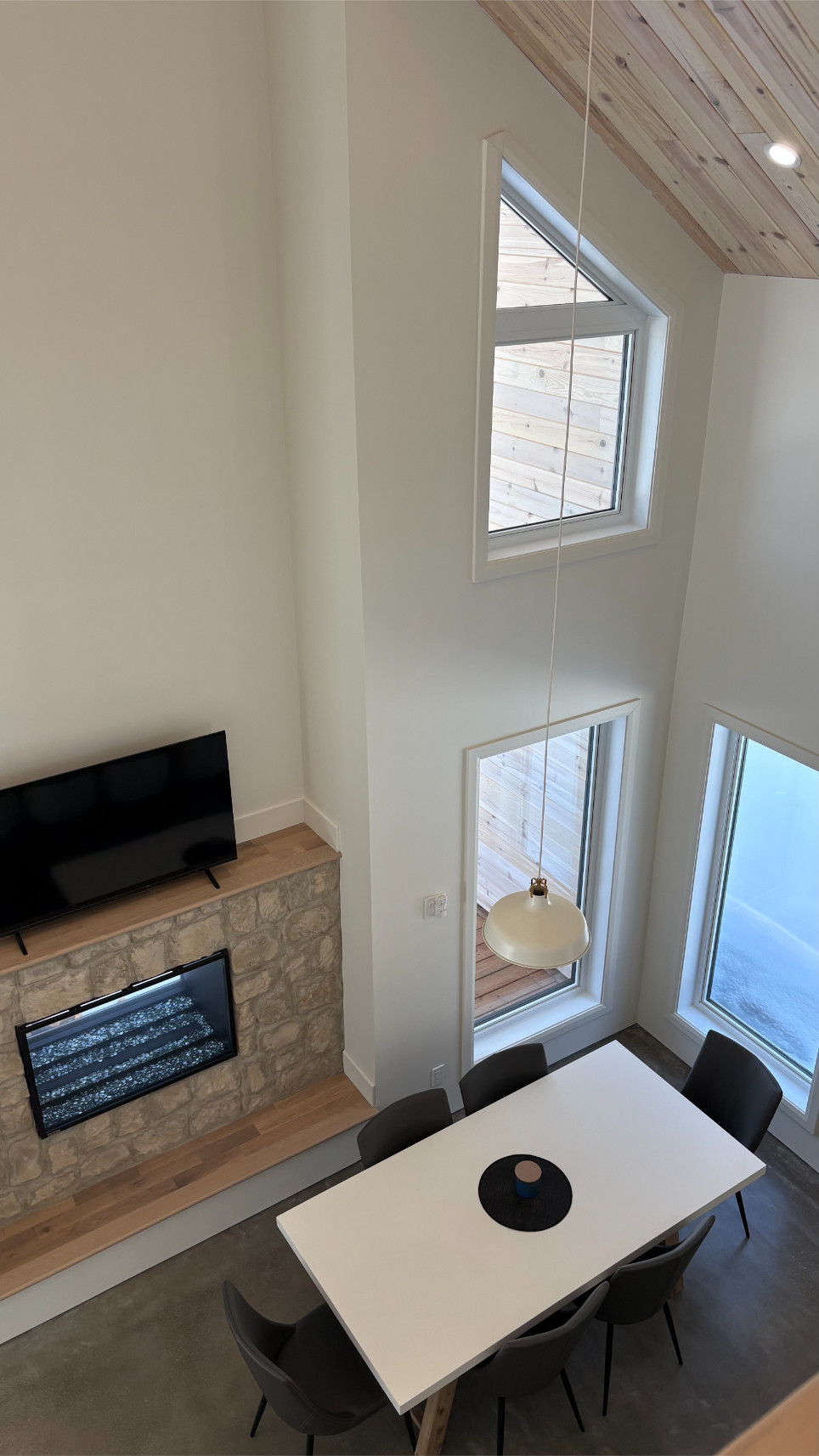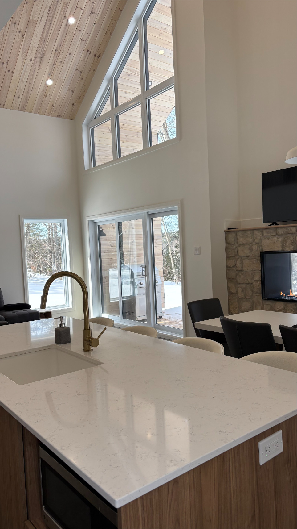 Discover Chalet Altitude in Saint-Raymond, in the beautiful Portneuf region. This modern chalet is located directly on the banks of the Sainte-Anne River, less than one hour from Québec City—the perfect destination for a nature getaway in any season.